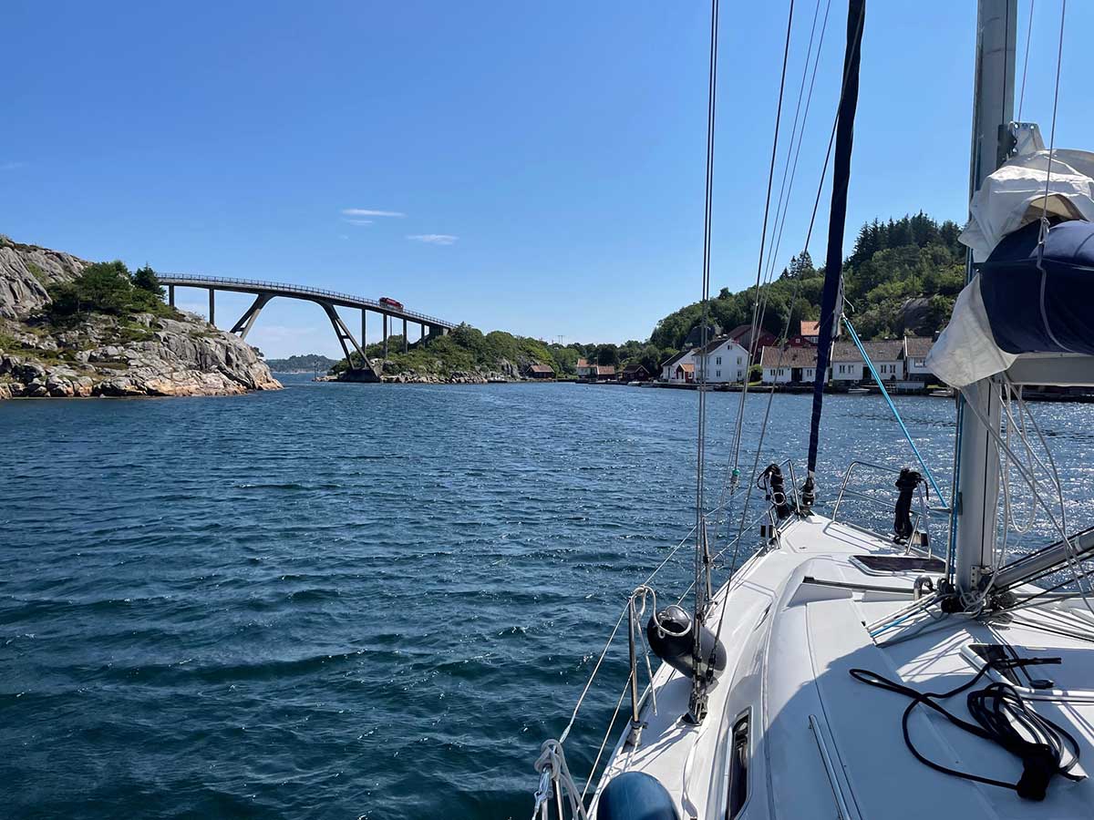 De oversteek over het Skagerrak naar Mandal is in principe een dagtrip. Toch vertrokken we halsoverkop, gewoon omdat het kon, halverwege de middag en kwamen om vier uur ’s ochtends aan in Noorwegen – onder het licht van de sectorlichten, die het navigeren verrassend eenvoudig maakten.