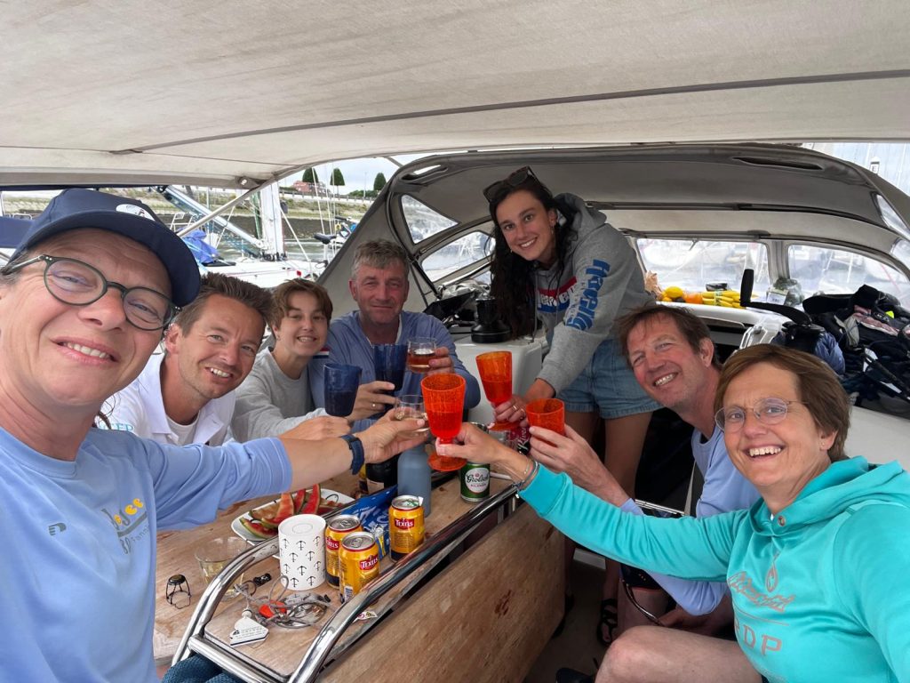Bij terugkomst in de haven is er familie op visite bij de ooDee en Paul heeft nog energie om een overheerlijk maal te bereiden voor ons allemaal! Dat kun je wel aan hem overlaten. We gaan uiteraard nog wel even naar de dagelijkse prijsuitreiking en de 3e prijs gaat zowaar naar ons! Boten met de meeste dames aan boord, jahoeoeoe! In het hele veld was er slechts een boot met voltallige damesbemanning. Op naar meer GirlPowerrrr! Gelukkig voel ik me weer wat beter en kan ik nog genieten van een gezellige avond in de kuip onder een volle maan.